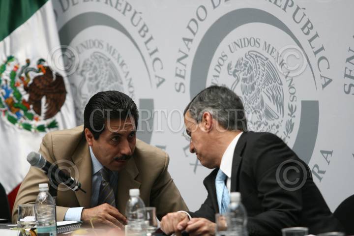 MÉXICO, D.F., 27MAYO2008.- Ruben Camarillo conversa con José Gonzñalez Morfín durante el debae de la reforma energética en el senado de la República. FOTO: SASHENKA GUTIERREZ /CUARTOSCURO.COM