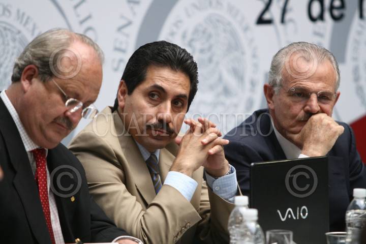 MÉXICO, D.F., 27MAYO2008.-Pablo Mulas del Pozo, Martín Esparza, Odon del Buen Rodríguez, durante su participación en el debate de la reforma energética en el senado de la República. FOTO: SASHENKA GUTIERREZ /CUARTOSCURO.COM