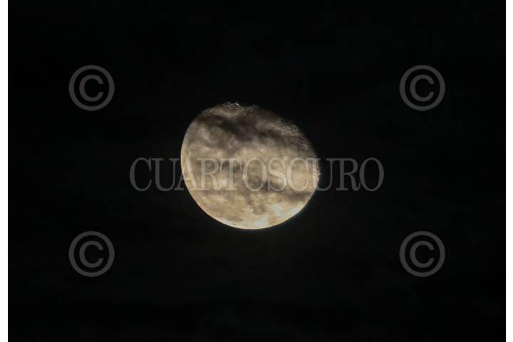 CIUDAD DE MÉXICO, 12ENERO2025.- La luna en su fase "creciente" entre las nubes de esta noche. FOTO: MARIO JASSO/CUARTOSCURO.COM