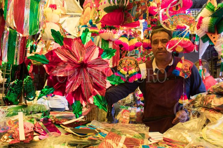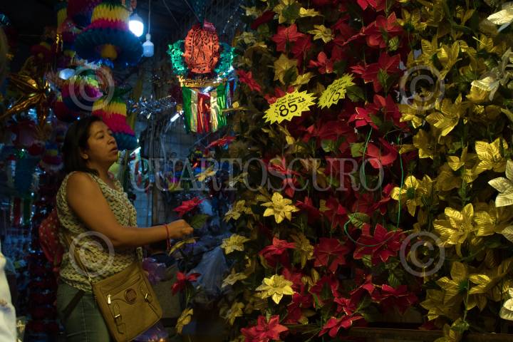 CIUDAD DE MÉXICO, 23NOVIEMBRE2019.- Noche buenas, piñatas, luces, árboles y todo tipo de decoraciones navideñas se comenzaron a vender en el mercado de la merced a un mes de que se celebre la Navidad. FOTO: MAGDALENA MONTIEL /CUARTOSCURO.COM
