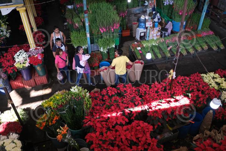 Habitantes de Puebla comenzaron la venta de nochebuena a un coste desde 20 a 100 pesos por pieza dependiendo de la calidad, en la Romería Navideña de la Central de Abastos