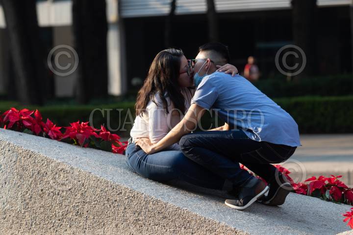Una pareja de enamorados se besó en las noche buenas de Avenida Reforma