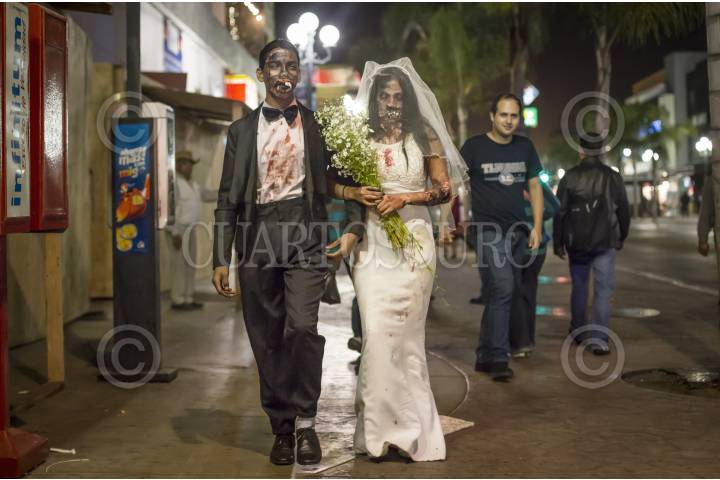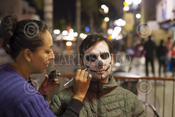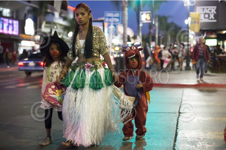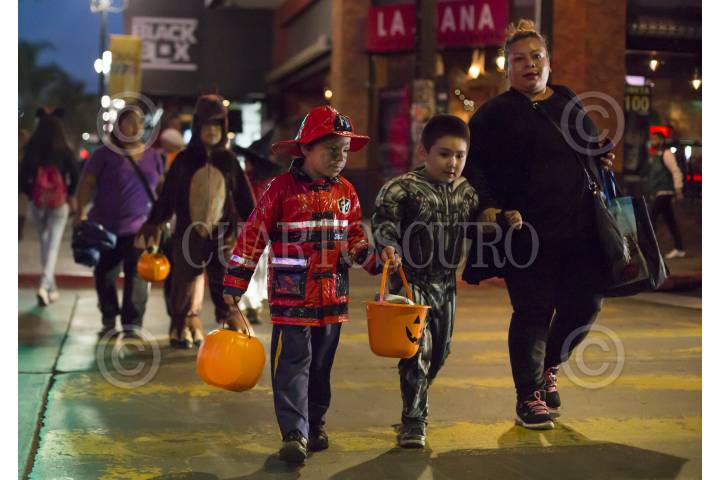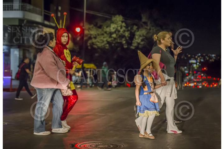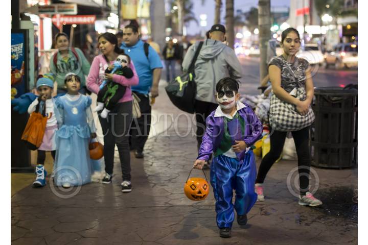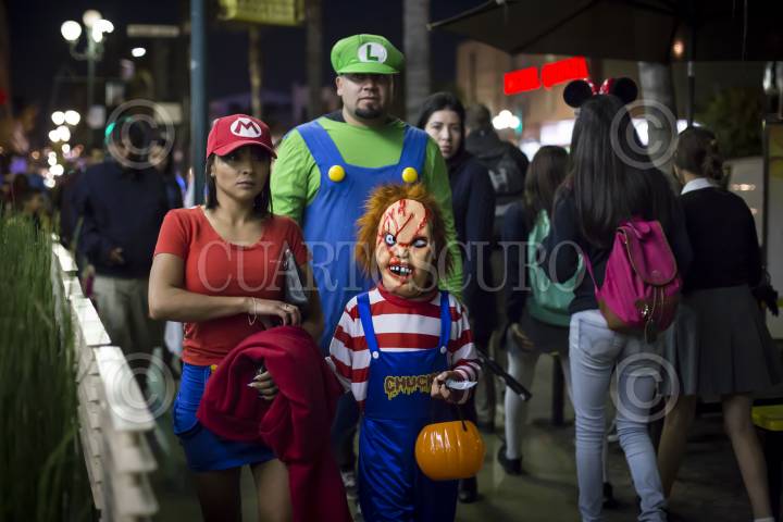 TIJUANA, BAJA CALIFORNIA, 31OCTUBRE2016.- Cientos de niños, jóvenes y adultos, con disfraces de distintos personajes de terror y tradicionales mexicanos, salieron a las calles del centro de la ciudad para pedir dulces y disfrutar de la noche de Halloween. La Noche de Brujas, como también se le conoce, se vivió tranquila y familiar, a partir de las 18:00 horas inició el flujo de disfrazados por la avenida Revolución. FOTO: CHRISTIAN SERNA /CUARTOSCURO.COM