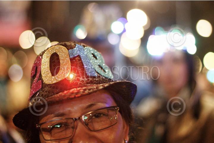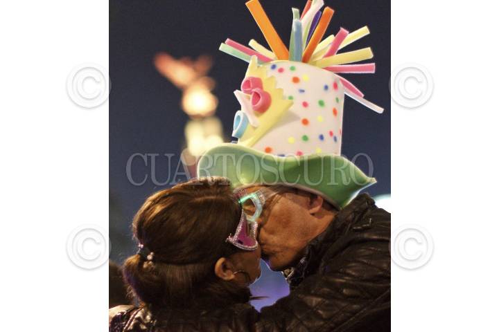 CIUDAD DE MÉXICO, 31DICIEMBRE2017.- Cientos de personas se preparan para recibir el Año Nuevo, mientras disfrutan del espectáculo musical en el Ángel de la Independencia, en la última noche de 2017. FOTO: ISAAC ESQUIVEL /CUARTOSCURO.COM