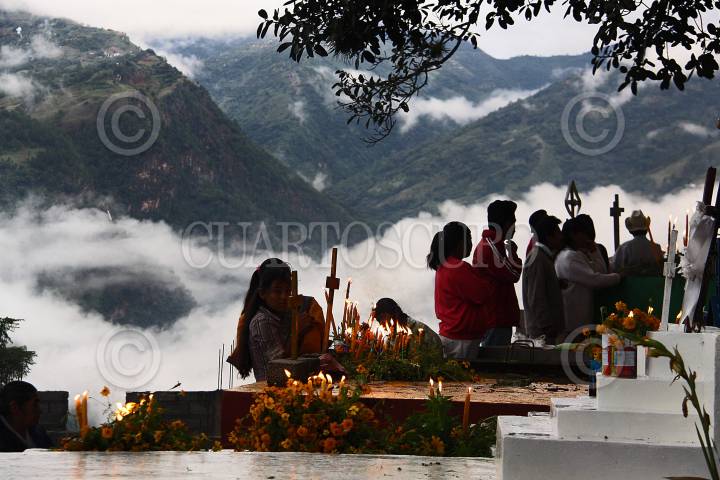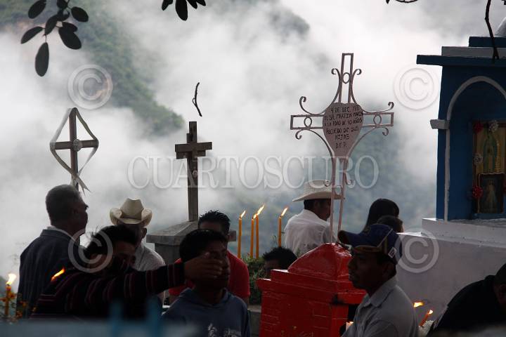 MAZATLÁN VILLA FLORES, TEOTITLAN, OAXACA, 02NOVIEMBRE2009.- Habitantes de la comunidad localizada en el corazón de la Sierra Mazateca dan comienzo al ritual conmemorativo a la festividad de los “antepasados mayores” En medio de cordilleras que dan forma a la Sierra Madre Oriental, al noroeste de la capital del estado de Oaxaca, se ubica el panteón de la comunidad, el cual conforme avanzan las horas se cubre de una delgada niebla y un ligero viento helado el cual da un toque especial a esta madrugada que se velará a los “angelitos”, los cuáles y según la tradición son esperados desde la media noche. FOTOREPORTAJE: MAXIMILIANO NUÑEZ/CUARTOSCURO.COM
