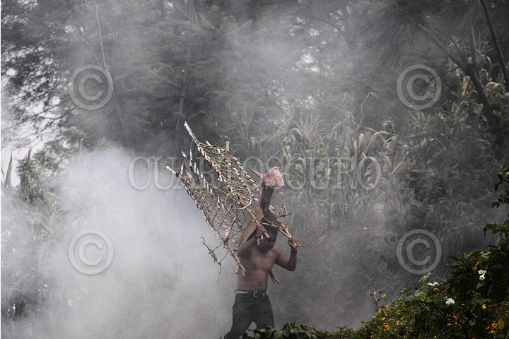 MAZATLÁN VILLA FLORES, TEOTITLAN, OAXACA, 02NOVIEMBRE2009.- Un joven habitante de la comunidad localizada en el corazón de la Sierra Mazateca carga en la espalda un "Torito" el cual es utilizado en el ritual conmemorativo a la festividad de los “antepasados mayores” En medio de cordilleras que dan forma a la Sierra Madre Oriental, al noroeste de la capital del estado de Oaxaca, se ubica el panteón de la comunidad, el cual conforme avanzan las horas se cubre de una delgada niebla y un ligero viento helado el cual da un toque especial a esta madrugada que se velará a los “angelitos”, los cuáles y según la tradición son esperados desde la media noche. FOTOREPORTAJE: MAXIMILIANO NUÑEZ/CUARTOSCURO.COM
