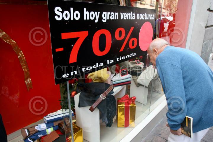 MÉXICO D.F., 28NOVIEMBRE2008.- Al estilo norteamericano muchas tiendas ofrecen su "Gran Venta Nocturna" cuyos descuentos oscilan del 50% a el 70%, en la imagen un aparador en el Centro Histórico. FOTO: MOISÉS PABLO/CUARTOSCURO.COM