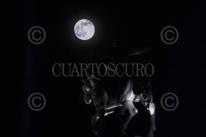 PUEBLA, PUEBLA, 12JULIO2014.- Aspecto de la superluna visto desde el mausoleo a Ignacio Zaragoza en la ciudad de Puebla. La noche de hoy se puede observar la luna mas grande de lo normal debido al fenómeno conocido como "Superluna" en el que el satélite alcanzará un tamaño inusitado por encontrarse en el punto más cercano a nuestro planeta dentro de su órbita. FOTO: HILDA RÍOS /CUARTOSCURO.COM