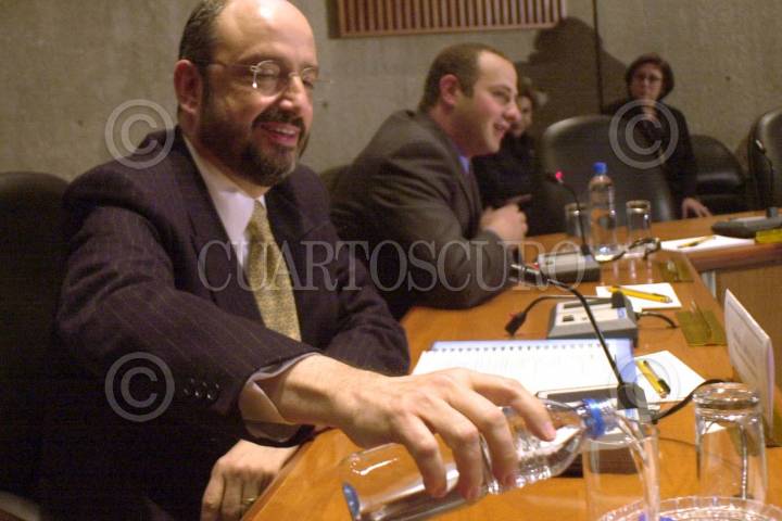 México D.F 26Febrero 2004.- Carlos de Icaza, recioen nombrado embajador de México ante Estado Unidos, antes de dar su conferencia de prensa se sirve una vaso de agua. FOTO: Eunice Adorno/CUARTOSCURO.COM