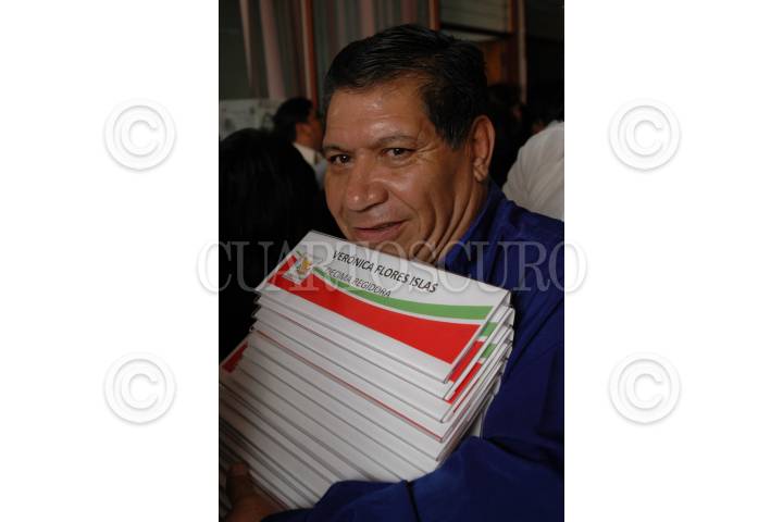 NEZAHUALCÓYOTL, EDO. DE MÉXICO, 20AGOSTO2009.- Un hombre sale de la sesión de cabildo con los nombres que identifican a los nuevos regidores y sindicos del gobierno local. FOTO. MARIO NULO/CUARTOSCURO.COM