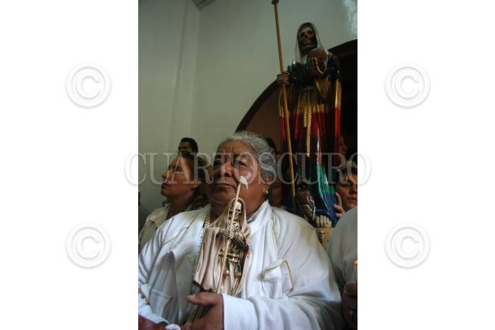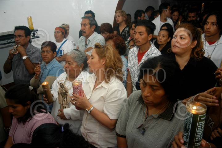 MÉXICO D.F. 12AGOSTO2007.-Decenas de fieles asistierón a la iglesia de San Felipe de Jesús, donde se realizó la misa en honor a la "Santisima Muerte" en la la cual se dio a conocer la nuva imagen y su nuevo nombres el cual sera el de "Angel de la Muerte". FOTO: GUILLERMO PEREA/CUARTOSCURO.COM