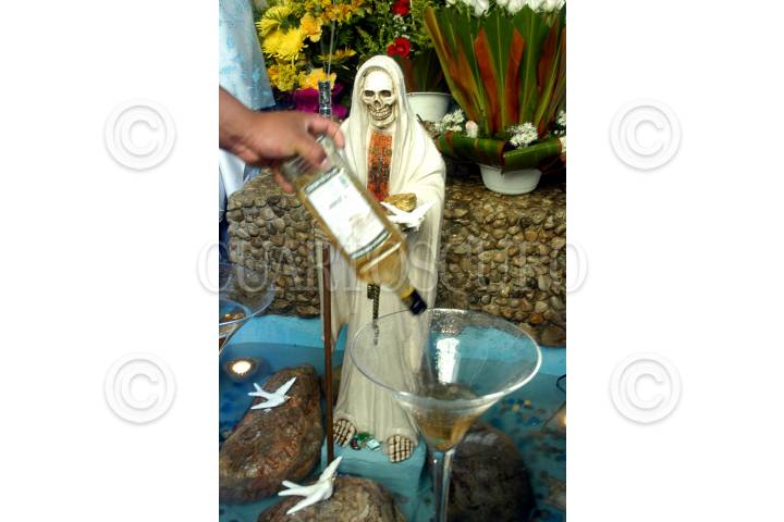 MÉXICO D.F. 12AGOSTO2007.-Decenas de fieles asistierón a la iglesia de San Felipe de Jesús, donde se realizó la misa en honor a la "Santisima Muerte" en la la cual se dio a conocer la nueva imagen y su nuevo nombres el cual sera el de "Angel de la Muerte". FOTO: GUILLERMO PEREA/CUARTOSCURO.COM