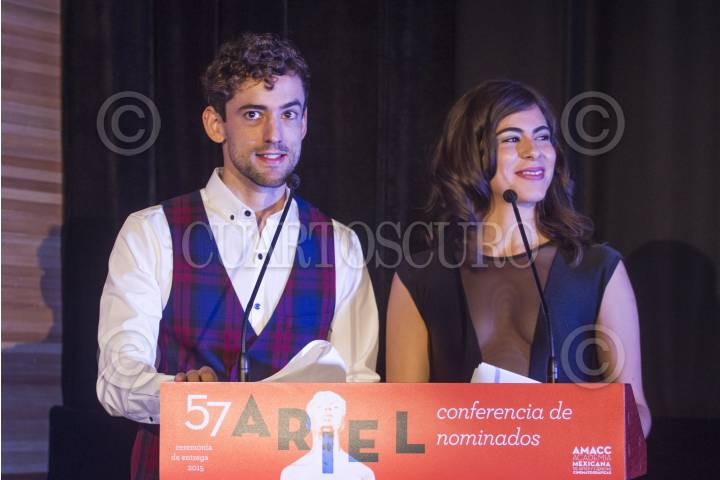 MÉXICO, D.F., 13ABRIL2015.- Los actores Luis Gerardo Méndez y Sofía Espinosa presentaron a los nominados de las 26 categorías de la edición 57 de los premios Ariel, en donde la cinta "Güeros" obtuvo 12 nominaciones. FOTO: ISAAC ESQUIVEL /CUARTOSCURO.COM
