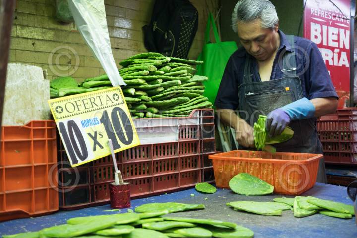 CIUDAD DE MÉXICO, 30MAYO2019.- Un locatario del Mercado la merced corta nopales, los cuales vende a un peso cada uno. FOTO: GRACIELA LÓPEZ /CUARTOSCURO.COM