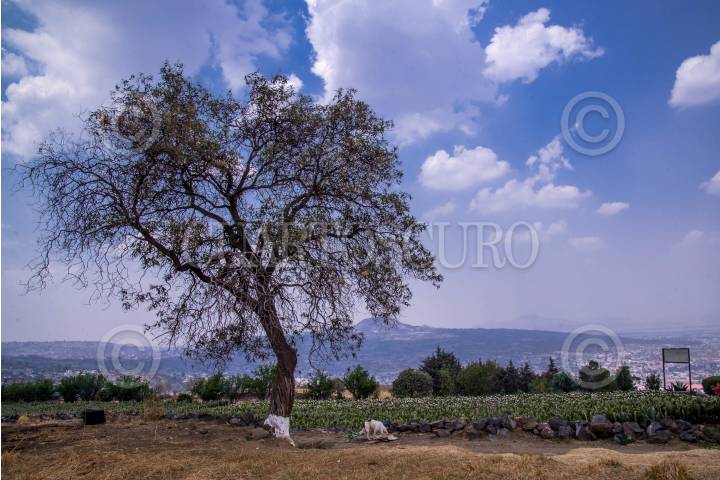 TEPOZTLÁN, MORELOS, 28OCTUBRE2023.- Paisaje cotidiano en el poblado de San Andrés de la Cal, los rayos del sol se cuelan por entre nopales. FOTO: MARGARITO PÉREZ RETANA/CUARTOSCURO.COM