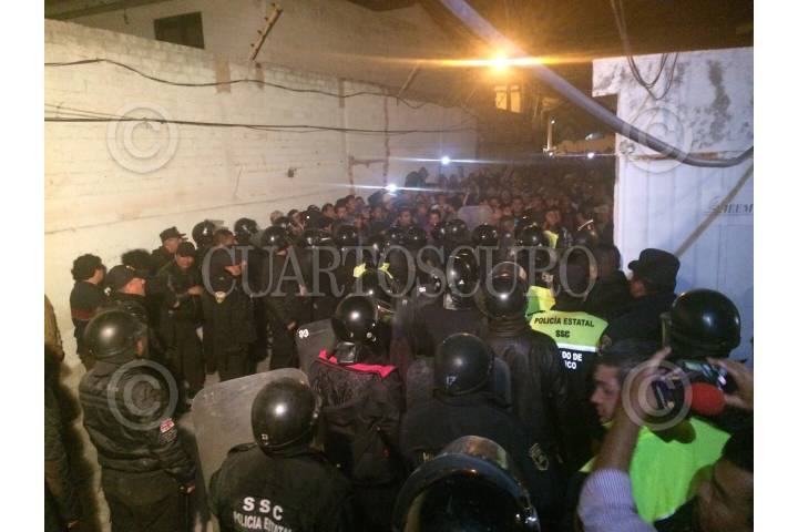 NOPALTEPEC, ESTADO DE MÉXICO, 11JUNIO15.- Pobladores del municipio entraron a las oficinas del INE para quemar las boletas Electorales, argumentando el fraude electoral en la demarcación causando destrozos siendo desalojados por la fuerza publica, luego de la quema la noche de ayer, cerraron por la mañana la autopista México Tuxpan a la altura del kilómetro 40 en protesta. FOTO: DIEGO REYES /CUARTOSCURO.COM