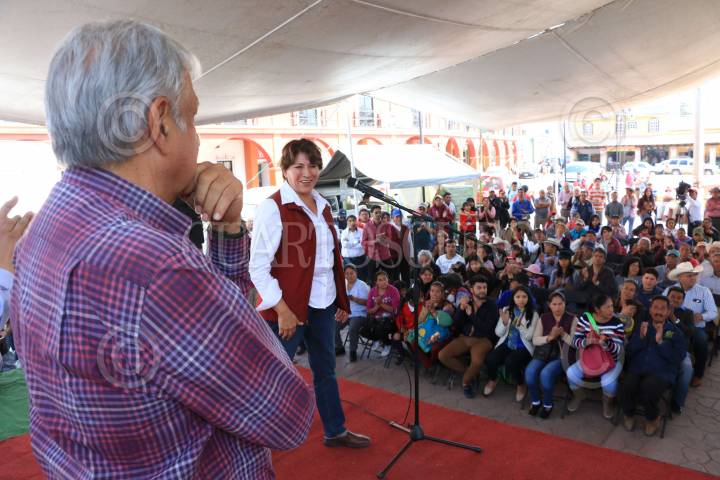 NOPALTEPEC ESTADO DE MÉXICO, 31ENERO2017.- Andrés Manuel López Obrador acompañado de Delfina Gómez Álvarez, candidata de Morena a la gubernatura del Estado de México, visitaron los municipios de la región de las pirámides como parte de la precampaña electoral. FOTO: SAÚL LÓPEZ /CUARTOSCURO.COM