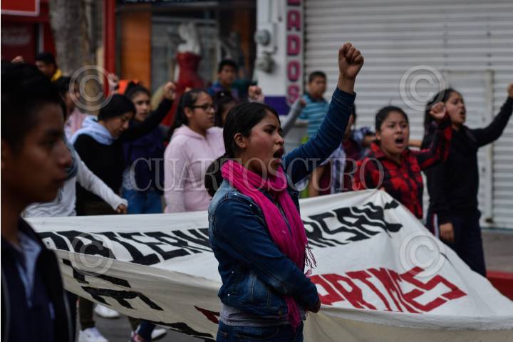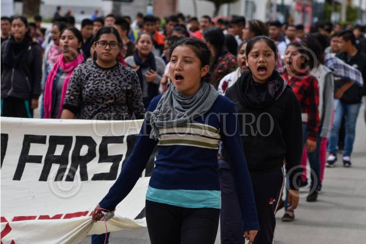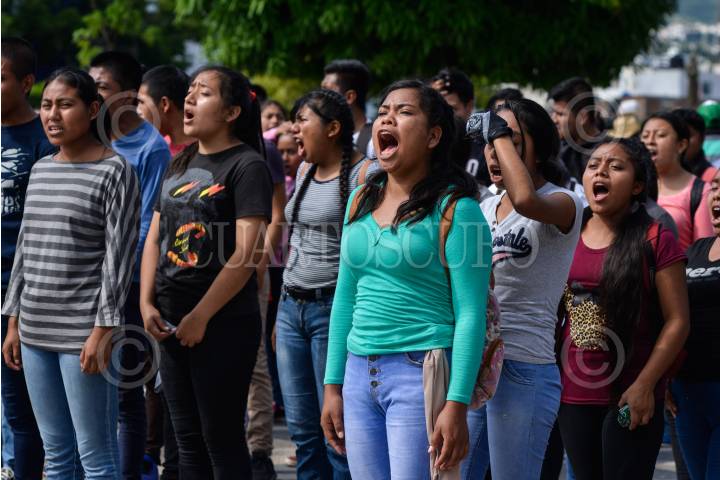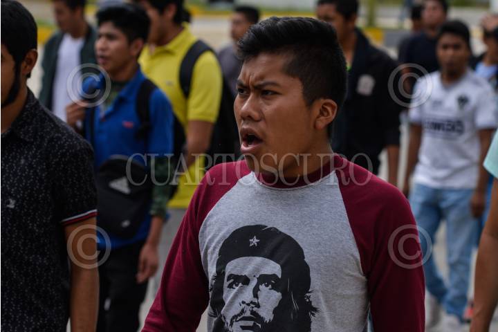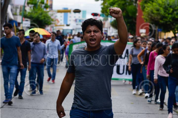 TUXTLA, CHIAPAS, 04NOVIEMBRE2019.- Estudiantes de la Escuela Normal Rural Mactumactzá, marcharon esta mañana por las calles principales de la capital del estado apoyados por compañeros de otras normales rurales como la Escuela Normal Rural Isidro Brugos de Ayotzinapa y otros estados, para exigirle al gobierno que pare la represión hacia los compañeros y se llegue a soluciones reales para acabar con la violencia y seguir estudiando, lo cual es su objetivo junto con la defensa de todas las Escuelas Normales en el país. FOTO: ISABEL MATEOS /CUARTOSCURO.COM