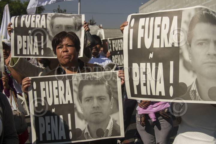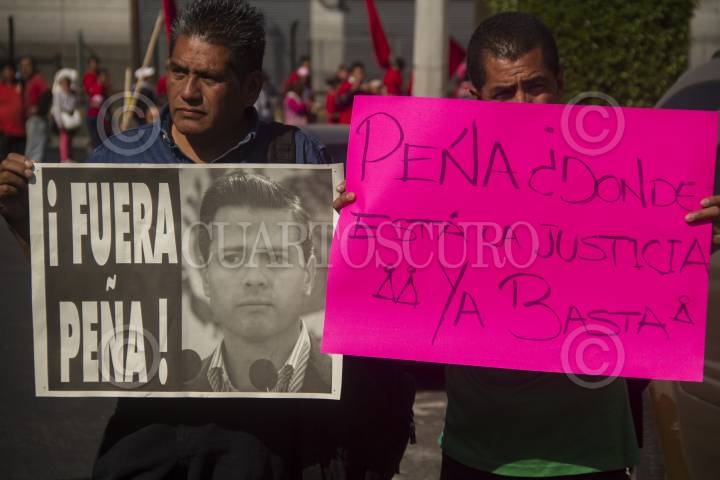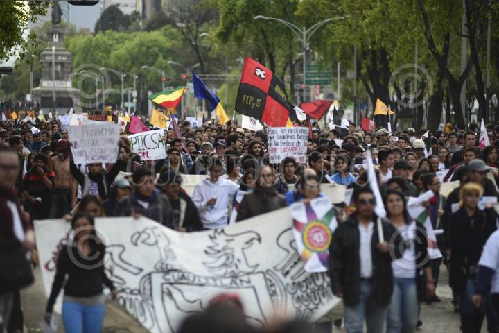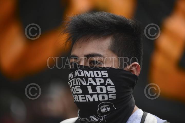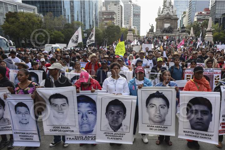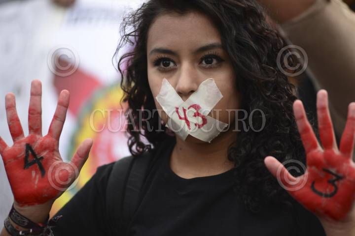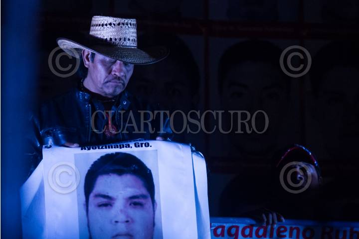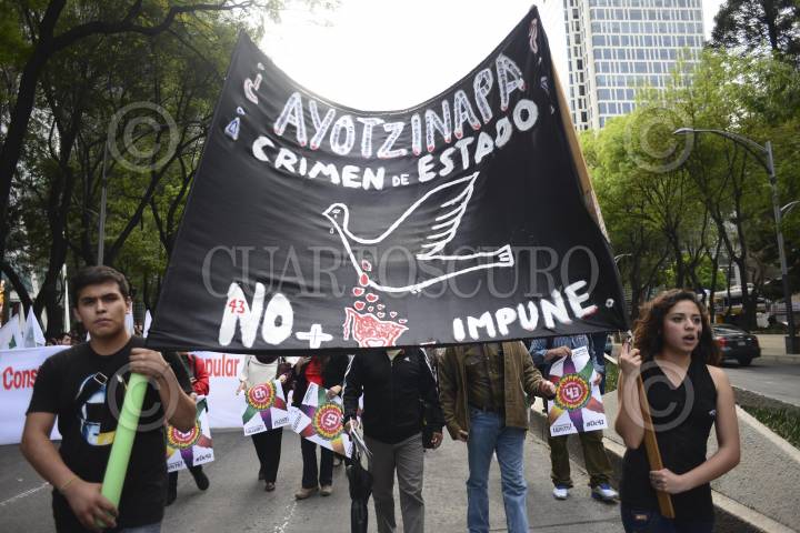MÉXICO, D.F., 26DICIEMBRE2014.- En una marcha silenciosa miles de mexicanos acompañaron a los padres y compañeros de los estudiantes normalistas desaparecidos el pasado 26 de septiembre en Iguala, Guerrero. Mientras caminaban hacia el monumento a la revolución sobre avenida Reforma, gritaban ¡fuera Peña!, ¡fue el Estado!, ¡vivos se los llevaron, vivos los queremos!. Uno de los estudiantes menciono ante medios de comunicación que no se van a vencer, seguiremos en la lucha y exigiendo respuestas de parte del gobierno. FOTO: ISABEL MATEOS /CUARTOSCURO.COM