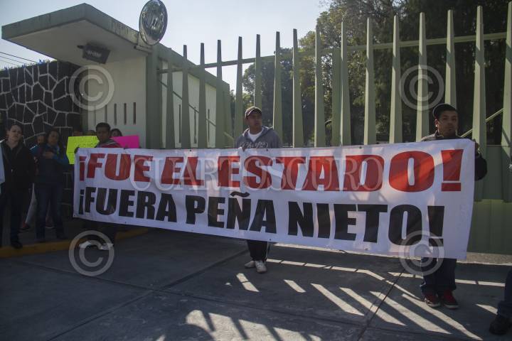 MÉXICO, D.F., 12ENERO2015.- El Congreso Popular, Social y Ciudadano del Distrito Federal, se manifestó en las inmediaciones del edificio de las Guardias Presidenciales ubicadas en avenida Tlalpan a la altura de Viaducto. El congreso Popular exige la presentación con vida de los 42 estudiantes normalistas, que aun siguen en calidad de desaparecidos desde el pasado 26 de septiembre del 2014, con pancartas de fuera Peña y gritando “Vivos los queremos”, permanecieron durante mas de una hora. FOTO: ISABEL MATEOS /CUARTOSCURO.COM