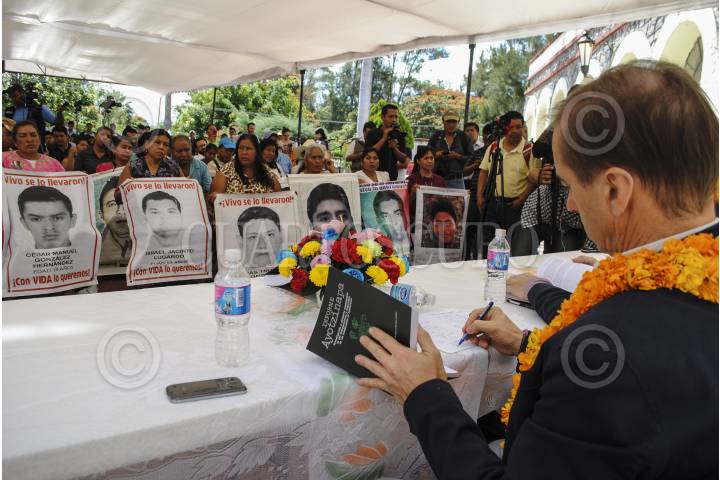 TIXTLA, GUERRERO 08 SEPTIEMBRE 2015.- Integrantes del Grupo Interdisciplinario de Expertos Independientes (GIEI) de la Comisión Interamericana de Derechos Humanos (CIDH) rindieron el informe de la investigación y las primeras conclusiones de la desaparición y homicidio de estudiantes de Ayotzinapa en el 2014 en Iguala. Los expertos de izquierda a derecha Claudia Paz, Francisco Cox, Carlos Beristaín y Omar Gómez, secretario ejecutivo del grupo de expertos. FOTO: JOSÉ I. HERNÁNDEZ / CUARTOSCURO.COM