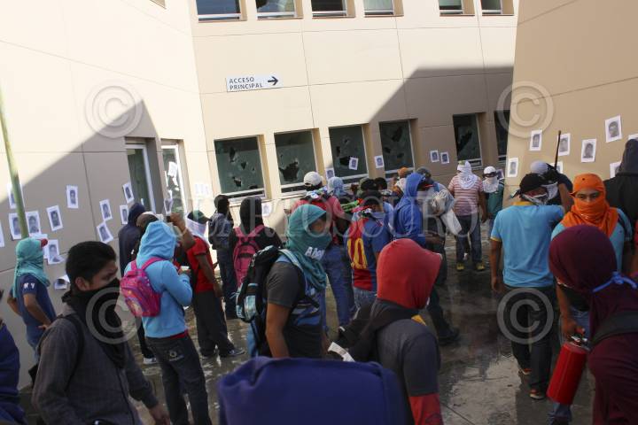 CHILPANCINGO, GUERRERO, 21SEPTIMBRE2015.- Padres de familia y normalistas destruyeron mobiliario de la Fiscalía General del estado, quemaron algunos documentos en la caseta de vigilancia de la dependencia y posteriormente se dirigieron al norte de la ciudad. Los padres de familia solicitaron cooperación voluntaria de los automovilistas; los normalistas retuvieron automoviles oficiales en el punto conocido como Tierras Prietas, exigiendo la presentación con vida de los 43 estudiantes desaparecidos en Iguala. FOTO: JOSÉ I. HERNÁNDEZ /CUARTOSCURO.COM