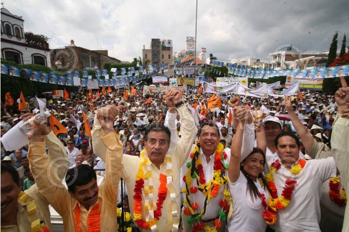 TLAPA, GUERRERO, 16ENERO2011.- Jesús Ortega Martínez, presidente nacional del PRD, acompañó a Ángel Aguirre, candidato de la coalición "Guerrero nos une" a la gubernatura del estado, durante el cierre regional de campaña. FOTO: CUARTOSCURO.COM