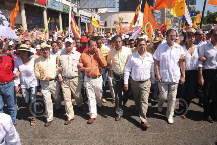 ACAPULCO, GUERRERO 07NOVIEMBRE2010.- El presidente nacional del PRD, Jesús Ortega Martínez, durante la caminata y mega concentración en apoyo a Ángel Aguirre Rivero, candidato de la coalición "Guerrero Nos Une", desde La Piñata del Parque Papagayo hasta el Zócalo de Acapulco. Entre los asistentes estuvieron Luis Walton, dirigente nacional de Convergencia; Jesús Zambrano, coordinador de campaña; Marcelo Ebrard, jefe de Gobierno del DF; Gabino Cué, gobernador electo de Oaxaca; los senadores Carlos Navarrete y Graco Ramírez. . FOTO: CUARTOSCURO.COM