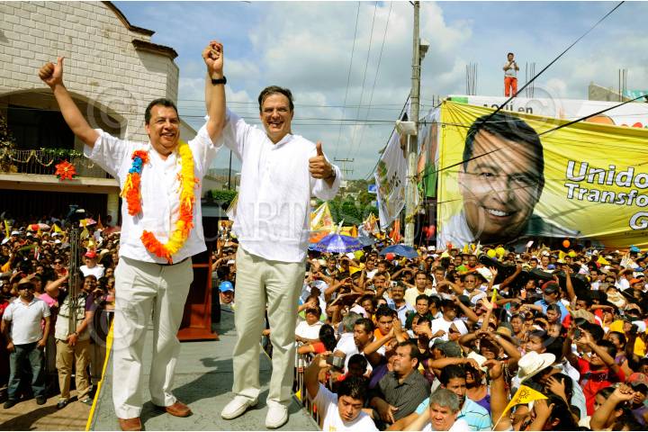 TELOLOAPAN, GUERRERO, 03NOVIEMBRE2010.- Ángel Aguirre Rivero es el candidato a la gubernatura del estado por la coalición "Guerrero Nos Une", en compañía de Jesús Ortega, dirigente nacional del PRD. FOTO: CUARTOSCURO.COM