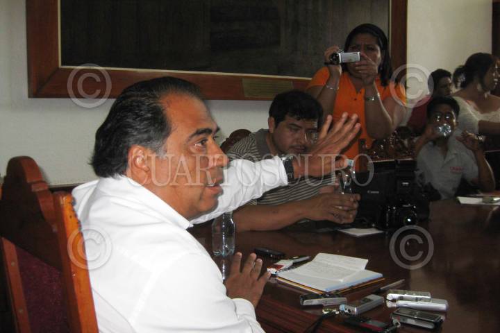 CHILPANCINGO, GUERRERO, 12NERO2011.- Héctor Astudillo Flores, alcalde de Chilpancingo, durante la conferencia ofrecida a los representantes de los medios de comunicación, donde fijo su postura y condeno a la agresión física que sufriera Guillermo Sánchez Nava representante de la coalición "Guerrero nos Une" ante el Instituto Electoral del Estado de Guerrero (IEGG) la noche del martes por personas desconocidas y supuestos simpatizantes del candidato a gobernador por la coalición "Tiempos Mejores para Guerrero" Manuel Añorve Baños. Ángel Aguirre Rivero, tras la agresión se mantiene sumamente grave debido a que sufrió derrame cerebral y fractura de cráneo como consecuencia de los golpes que recibió. FOTO: OSCAR ALVARADO/CUARTOSCURO.COM