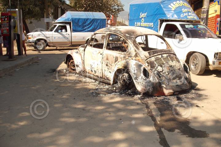 ACAPULCO, GUERRERO, 30ENERO2011.- Encuentran carro quemado en la calle Guamúchil de la colonia Unidos por Guerrero a casi 100 metros una casilla electoral. No se reportaron lesionados. La unidad presentaba varios impactos de arma de fuego. Se presumen que los hechos fueron la madrugada de hoy, según información de las autoridades locales. FOTO: URIEL SÁNCHEZ/CUARTOSCURO.COM
