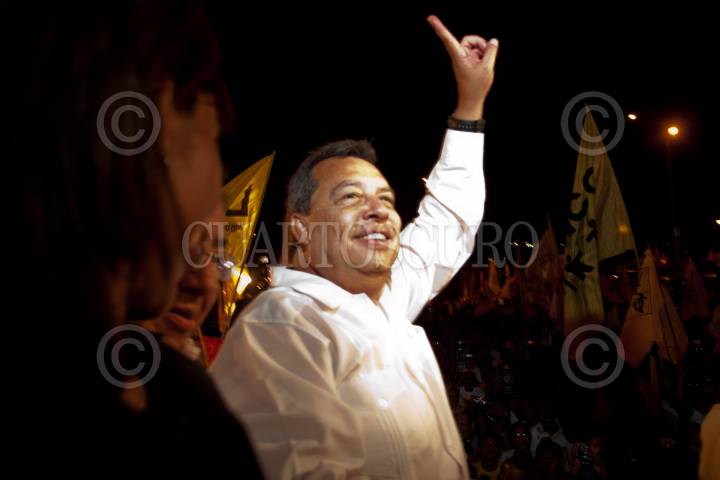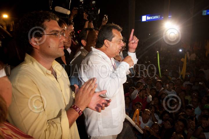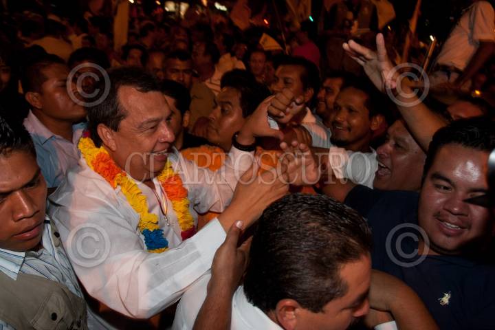 ACAPULCO GUERRERO, 30ENERO2011.- Ángel Aguirre, Candidato de la coalición “Guerrero nos Une” festejo acompañado de sus simpatizantes su virtual victoria en la contienda electoral por la Gobernatura de esta entidad. FOTO: GUILLERMO PEREA/CUARTOSCURO.COM