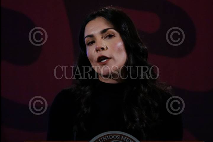 CIUDAD DE MÉXICO, 14FEBRERO2024.- Ana Elizabeth García Vilchis, titular de la sección Quien es quien en las mentiras de la semana, durante la conferencia de prensa matutina desde Palacio Nacional. FOTO: GALO CAÑAS/CUARTOSCURO.COM