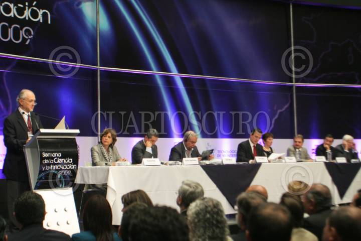 MÉXICO, D.F. 21SEPTIEMBRE2009.- Marcelo Ebrard, Jefe de Gobierno Capitalino, Mario Molina, premio Novel de química, Juan Ramón de la Fuente, ex rector de la Universidad Nacional Autronoma de México acudieron a la inauguracion de la Semana de la Ciencia y la Inovación 2009 en el Palacio de Minería. FOTO: ENRIQUE ORDÓÑEZ/CUARTOSCURO.COM