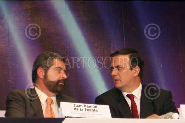 MÉXICO, D.F. 21SEPTIEMBRE2009.- Marcelo Ebrard, Jefe de Gobierno Capitalino platicando con Juan Ramón de la Fuente, ex rector de la Universidad Nacional Autónoma de México durante la inauguracion de la Semana de la Ciencia y la Inovación 2009 en el Palacio de Minería. FOTO: ENRIQUE ORDÓÑEZ/CUARTOSCURO.COM