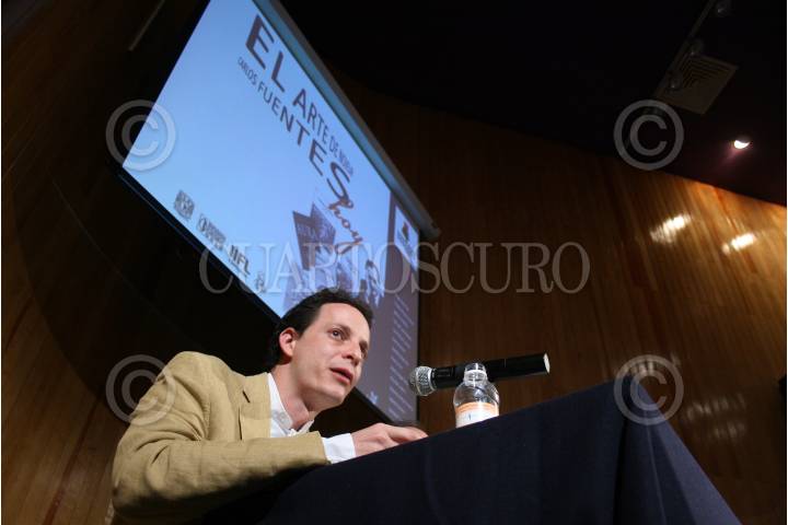 MÉXICO, D.F., 24 NOVIEMBRE2008.- En el marco de los Homenajes ofrecidos al reconocido escritor Cárlos Fuentes, la Universidad Autónoma Metropolitana continuo con su serie de conferencias literarias tituladas "el arte de novelar" . En las lecturas participaron Juan Villoro, Matilde Sanches, Santiago Roncagliolo, Carlos Franz y Sergio Missana. FOTO: COSME RADA/CUARTOSCURO.COM