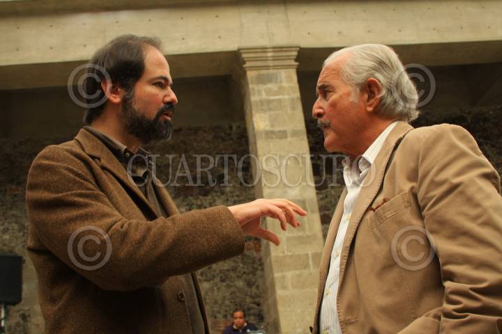 MÉXICO, D.F., 24 NOVIEMBRE2008.- Juan Villoro recibe al afamado escritor homenajeado Cárlos fuentes, al hacer su arribo a las conferencias literarias ofrecidas en su honor por parte de la UAM, dichas conferencias se titulan "El Arte de Novelar FOTO: COSME RADA/CUARTOSCURO.COM