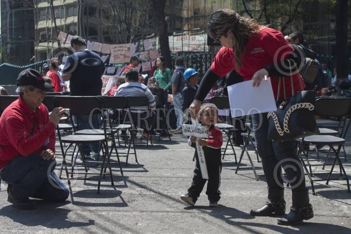 MÉXICO, D.F., 19FEBRERO2015.- A 9 años de la tragedia en Pasta de Conchos, cuyos responsables señalados por la CNDH y la OIT son los funcionarios de la STPS del gobierno de Vicente Fox y la empresa Minera México de Grupo México, familiares de los mineros celebraron una misa para recordarlos y exigir a las autoridades federales el rescate de los cuerpos, esto en la sede de Grupo México en Polanco. Alfonso Navarrete, secretario de Trabajo, ordenó en 2013 un nuevo peritaje que fue detenido por el poder judicial de la federación. La tragedia de Pastas de Conchos ocurrió el 19 de febrero del año 2006, teniendo como saldo de 11 trabajadores heridos y 65 mineros muertos, los restos de 63 aún yacen en el socavón, sin embargo, este no es un hecho aislado en las empresas del empresario Germán Larrea, apenas el año pasado su mina Buenavista del Cobre fue la responsable de un derrame de tóxicos en el Río Sonora. En la imagen Sandra Araceli Martínez González viuda de uno de los mineros. FOTO: MOISÉS PABLO /CUARTOSCURO.COM