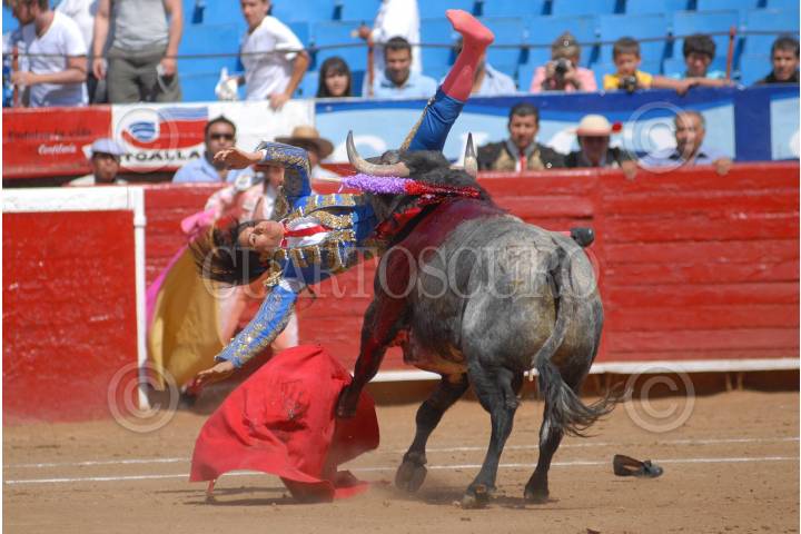 MÉXICO, DF., 06JUNIO2010.- Michelito Lagravere, novillero yucateco, fue embestido en su debut durante la corrida del primer paseíllo de la Temporada Chica 2010, en el serial denominado "De Toro, menos Fútbol". Esto, en la Monumental Plaza de Toros México. FOTO: GENARO GONZÁLEZ/CUARTOSCURO.COM