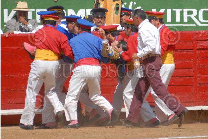 MÉXICO, DF., 06JUNIO2010.- Lupita López, novillera yucateca, fue brutalmente embestida durante la corrida del primer paseíllo de la Temporada Chica 2010, en el serial denominado "De Toro, menos Fútbol". Esto, en la Monumental Plaza de Toros México. FOTO: GENARO GONZÁLEZ/CUARTOSCURO.COM
