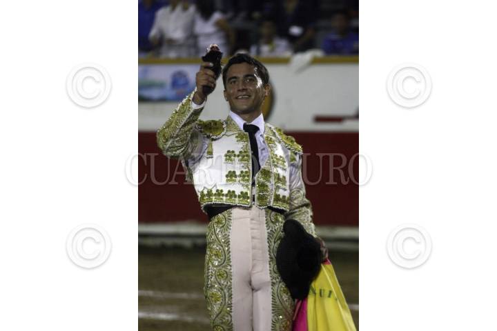 MÉXICO, DF., 06JUNIO2010.- Paulo Campero, novillero capitalino, durante la entrada al ruedo en el primer paseíllo de la Temporada Chica 2010, en el serial denominado "De Toro, menos Fútbol". Esto, en la Monumental Plaza de Toros México. FOTO: GENARO GONZÁLEZ/CUARTOSCURO.COM