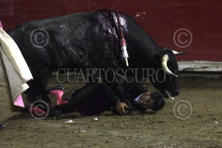 MÉXICO, DF., 06JUNIO2010.- Lupita López, novillera yucateca, fue brutalmente embestida durante la corrida del primer paseíllo de la Temporada Chica 2010, en el serial denominado "De Toro, menos Fútbol". Esto, en la Monumental Plaza de Toros México. FOTO: GENARO GONZÁLEZ/CUARTOSCURO.COM