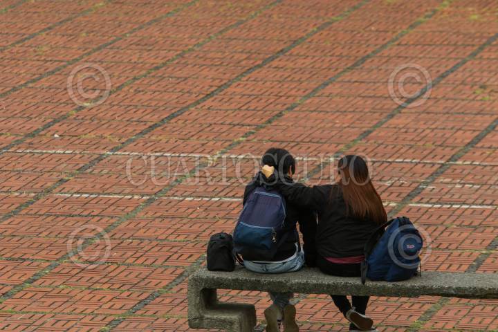 Parejas pasan la tarde observando su celular en la Alameda Central