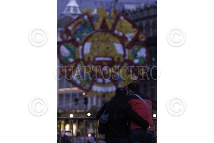 CIUDAD DE MÉXICO, 05SEPTIEMBRE2023.- Decenas de personas visitan el Zócalo Capitalino para tomarse una foto en el alumbrado en marco de las fechas patrias. FOTO: ANDREA MURCIA /CUARTOSCURO.COM