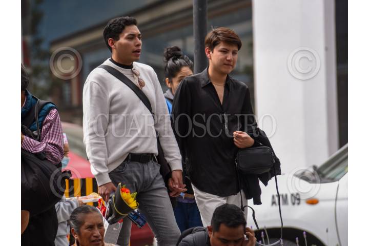 Parejas festejaron el Día del Amor y la Amistad, en el primer cuadro de la Ciudad de México.