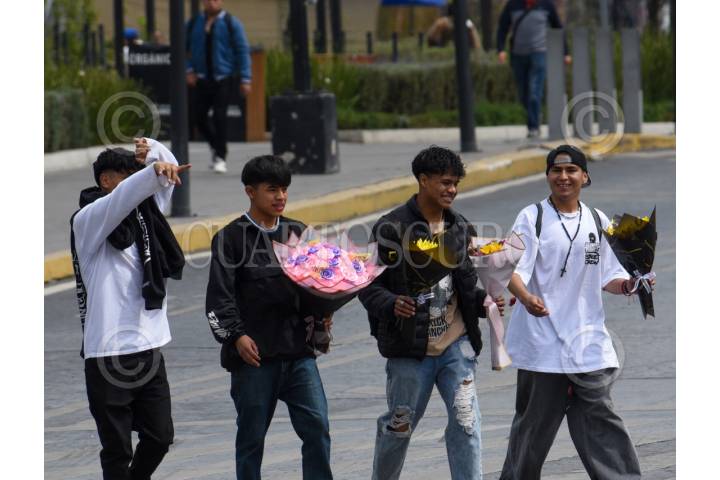 TOLUCA, ESTADO DE MÉXICO, 14FEBRERO2024.- Parejas con flores, regalos y globos se pudieron observar en la capital mexiquense como parte de la celebración del Día del Amor y la Amistad. FOTO: CRISANTA ESPINOSA AGUILAR /CUARTOSCURO.COM