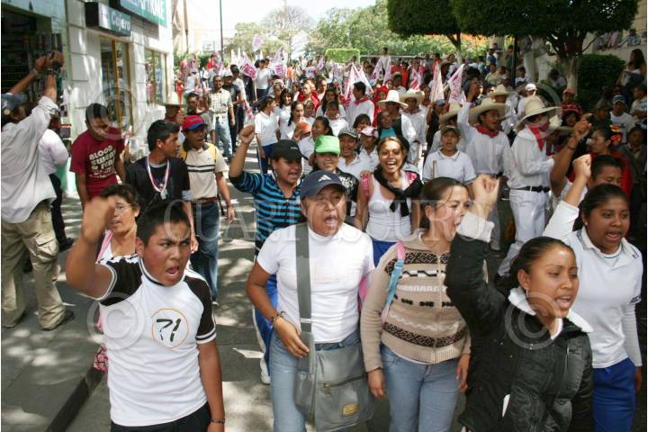 CHILPANCINGO, GUERRERI, 26JUNIO2008.-Integrantes de la Federacion Nacional de Estudiantes Revolucionarios Rafael Ramirez (FNERRR) marcharon por las principales calles y avenidas de la capital del estado, exigiendo al gobierno del estado solucion a sus diversas demandas. FOTO: OSCAR ALVARADO/CUARTOSCURO.COM