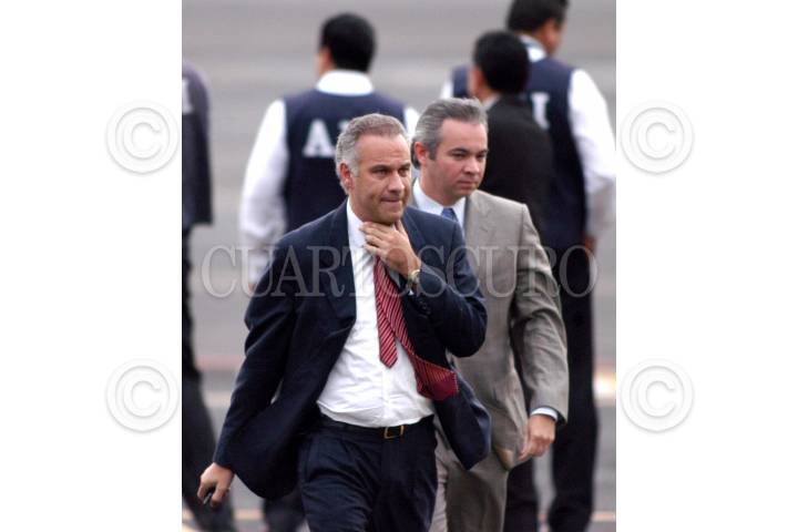 México D.F 28 Abril 2004.- Juan Collado abogado del empresario Carlos Ahumada llega al hangar de la PGR para respaldar a su cliente en el proceso legal. FOTO:Germán Romero/CUARTOSCURO.COM
