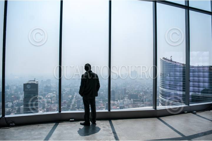 CIUDAD DE MÉXICO, 02MARZO2018.- Un hombre observa la ciudad desde el piso 30 de la Torre Diana, ubicada cerca del Paseo de la Reforma. FOTO: DIEGO SIMÓN SÁNCHEZ /CUARTOSCURO.COM