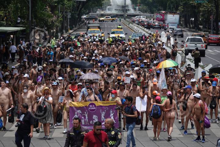 Segunda edición de la marcha nudista en la Ciudad de México que partió de la Fuente de Cibeles al Ángel de la Independencia.